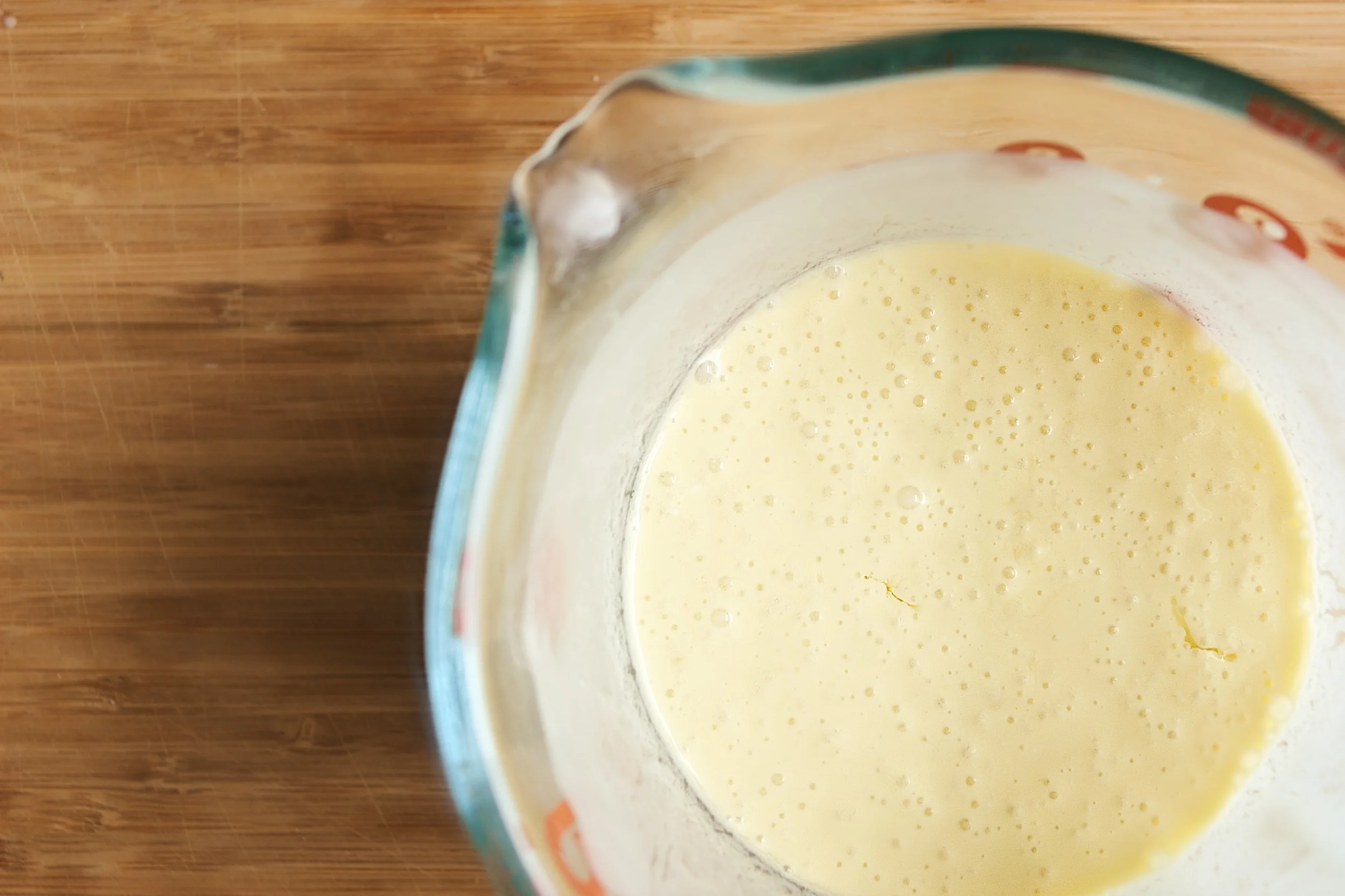 4. in a large measuring cup combine the coconut milk with the vinegar and let the mixture rest for 5-7 minutes - until bubbles form on the surface.  once bubbles have formed, whisk in the egg and the soaked currants