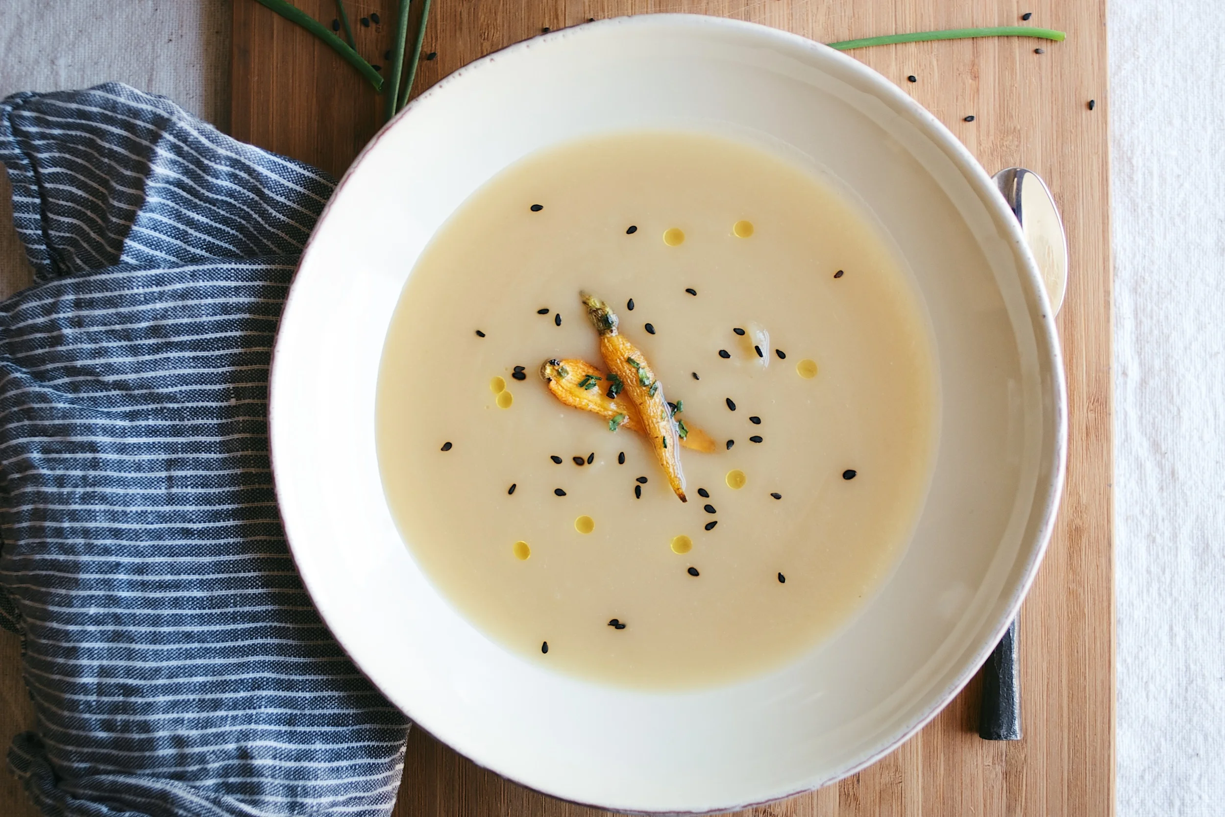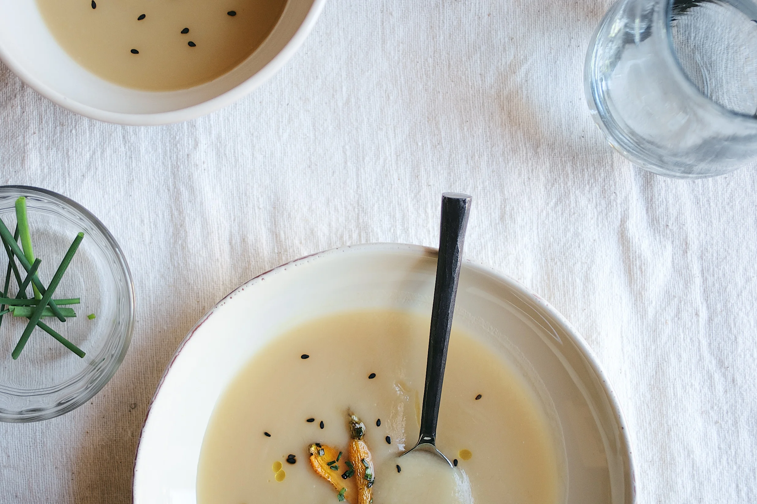 miso-yam soup w/ herb + sesame roasted carrots | gf + v