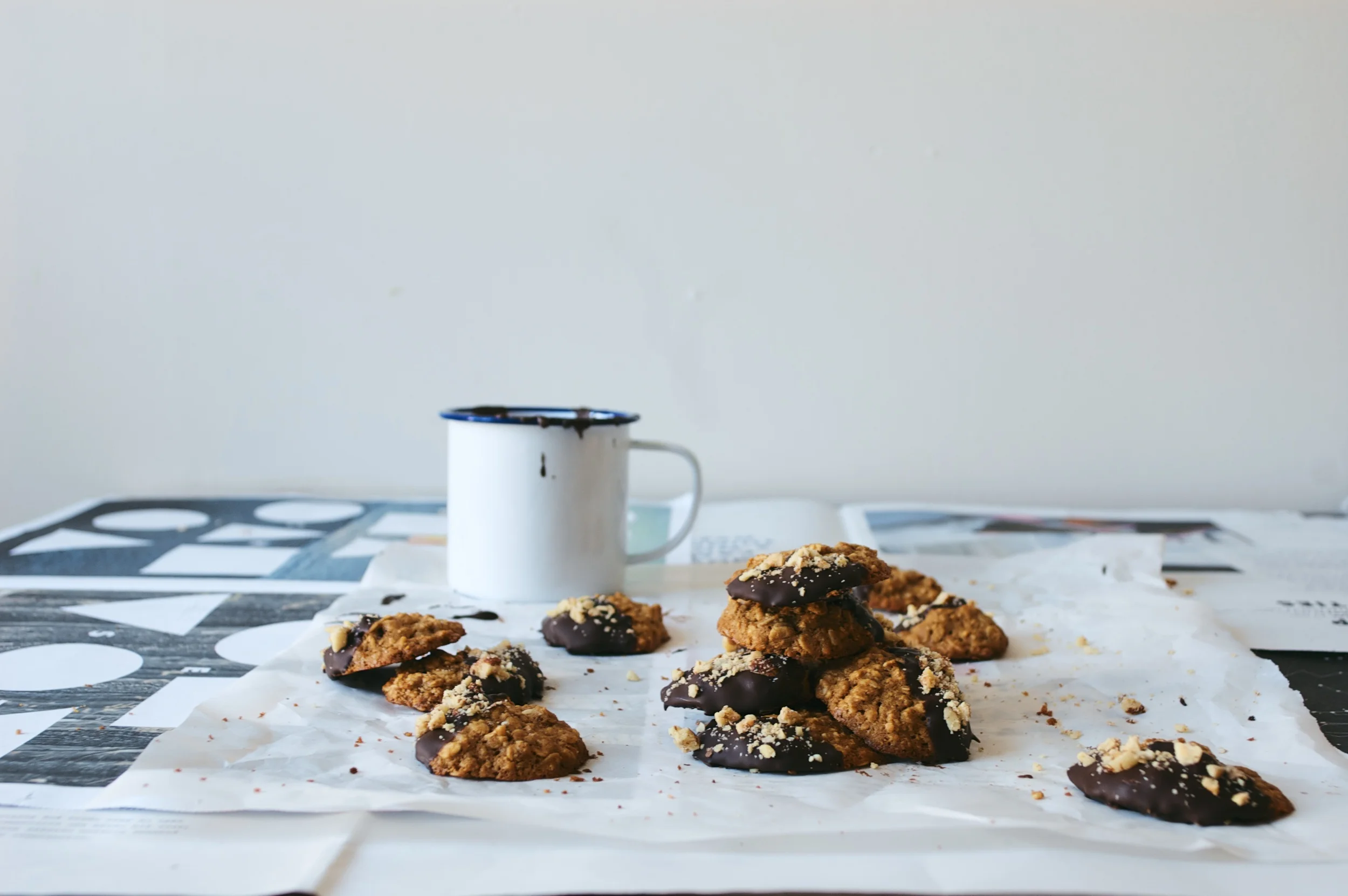 - while cookies are cooling, place chocolate chips in a double boiler or heatproof bowl over simmering water; stir the chocolate until melted. remove from heat and mix in the coconut oil; transfer to a small bowl or cup
