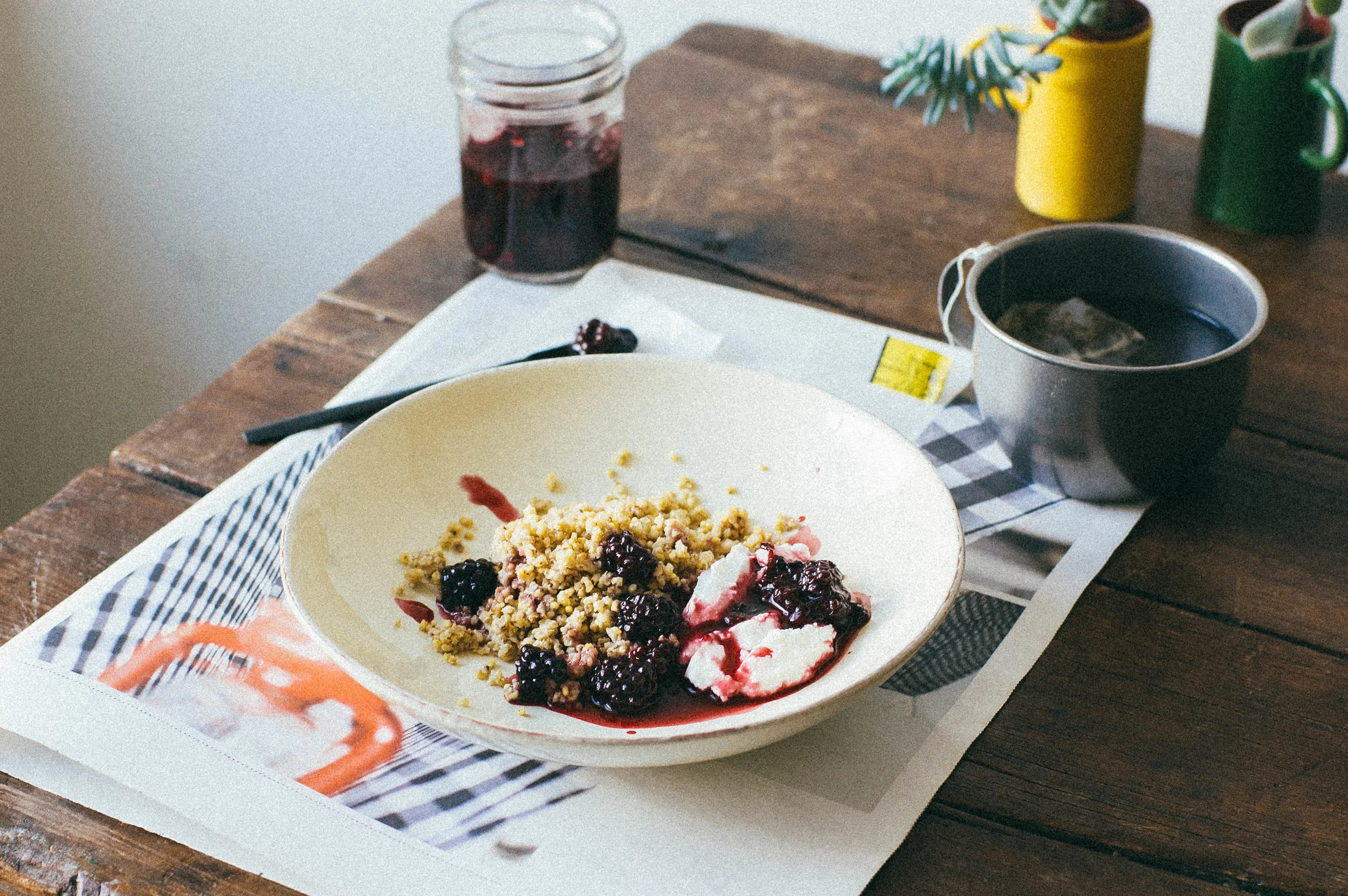 cardamom-toasted millet breakfast bowl w/ summer blackberry compote (gluten free + vegan)