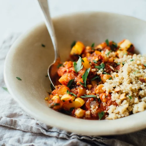 black lentil, sweet potato + kale chili w/ kabocha biscuits (v + gf)