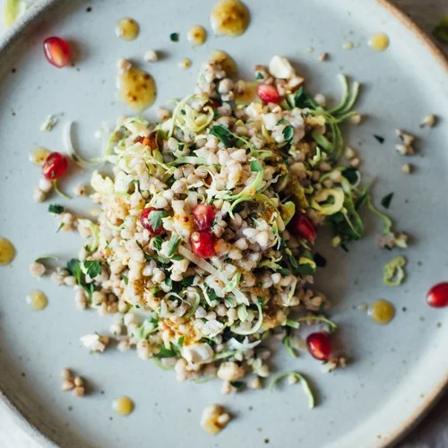 warm squash, parsnip + kale salad w/ pomegranate dressing