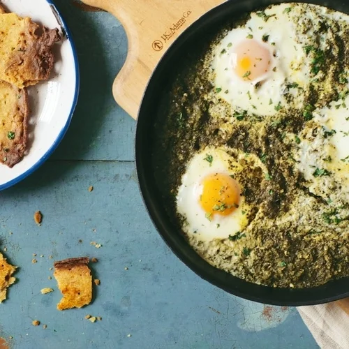 - heat a skillet over medium heat and add enough olive oil to thinly coat the pan. once the pan is hot, carefully crack the eggs into the pan and cook until whites are set, but yolk is still a bit runny, about 5-6 minutes.