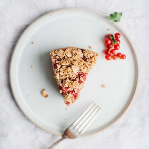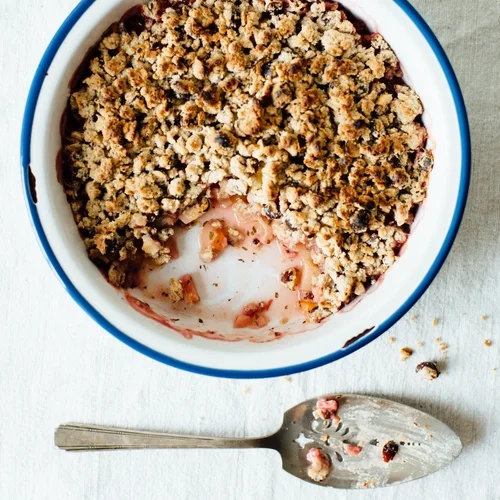 - make the topping. with a fork, whisk together all of the ingredients except for the oil. a few tablespoons at a time, add the coconut oil until the mixture has some small and large crumbs (depending on if it's humid or dry, this takes anywhere from 5-6 tablespoons of oil). cover with cling wrap and refrigerate for 10-15 minutes.