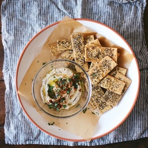 1. make the za'atar.  in a food processor, pulse the za'atar, nuts, lemon juice, and garlic until roughly ground.  with the motor running, drizzle in the oil until everything is combined.  season with salt.