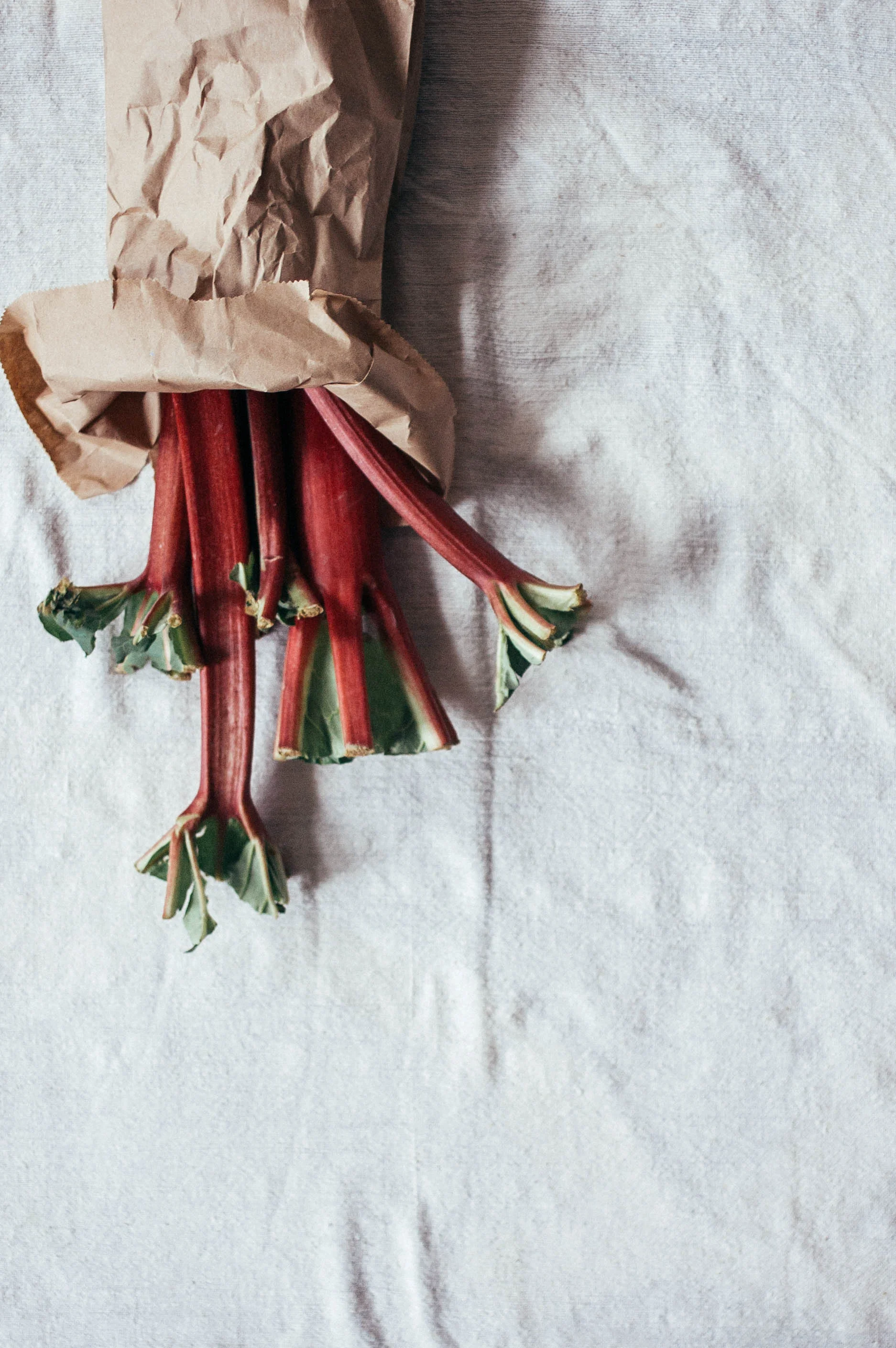 rhubarb is something that will forever remind me of my mom. she grew a bushel of it in the garden just outside her kitchen. we would wait for it to pop up from the ground each spring, and usually by the time mother’s day rolled around we had enough stalks to harvest to make a pie or crumble. i love rhubarb for so many reasons. its blush-y hues, and tartness, and the variety of ways you can use it. it’s strong and hearty, and soft and fragile all at the same time. and for those sweet memories its provided me with.