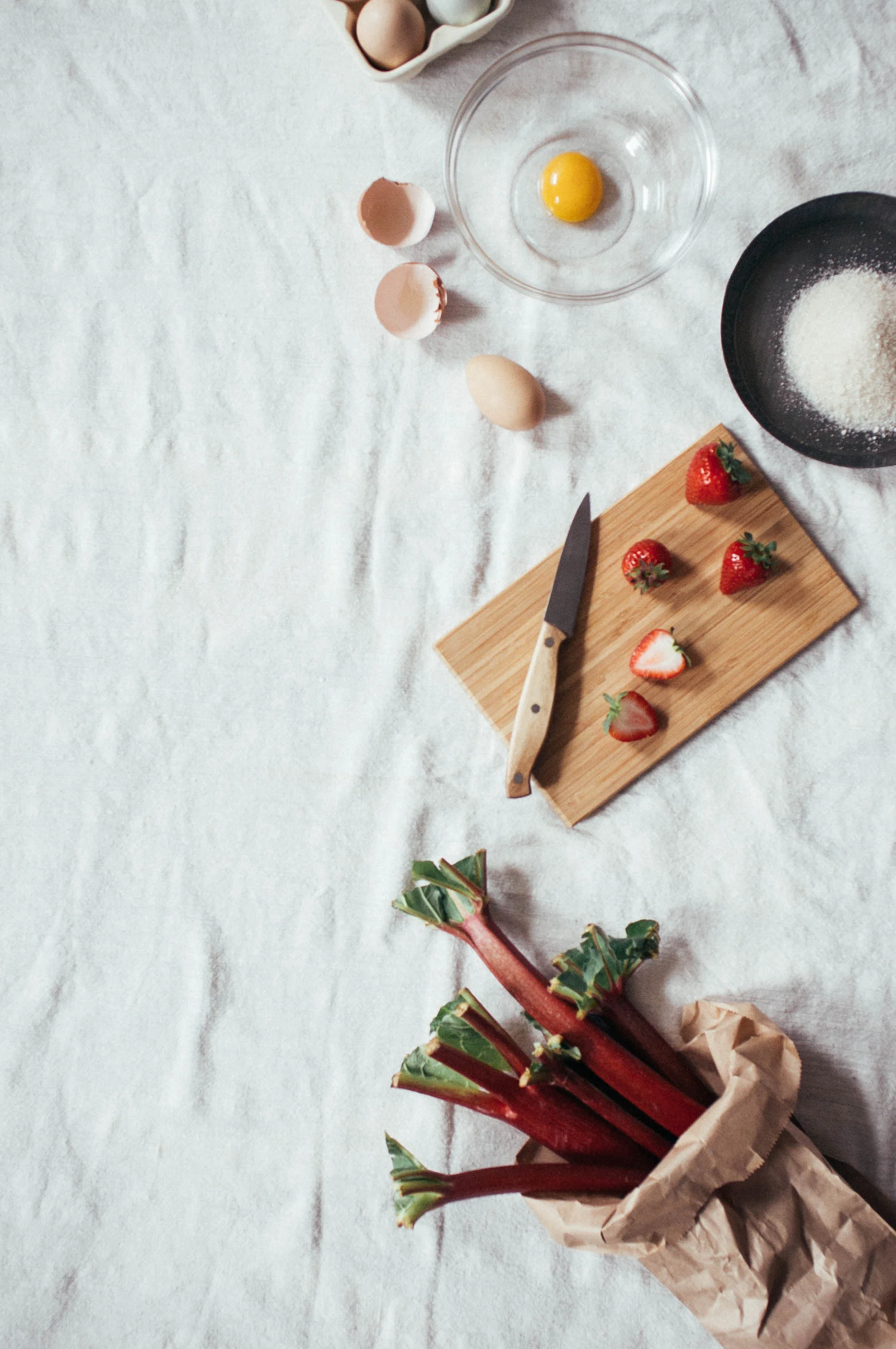• 10 ounces rhubarb (roughly 4-5 stalks), trimmed and cut into 1/2-inch chunks