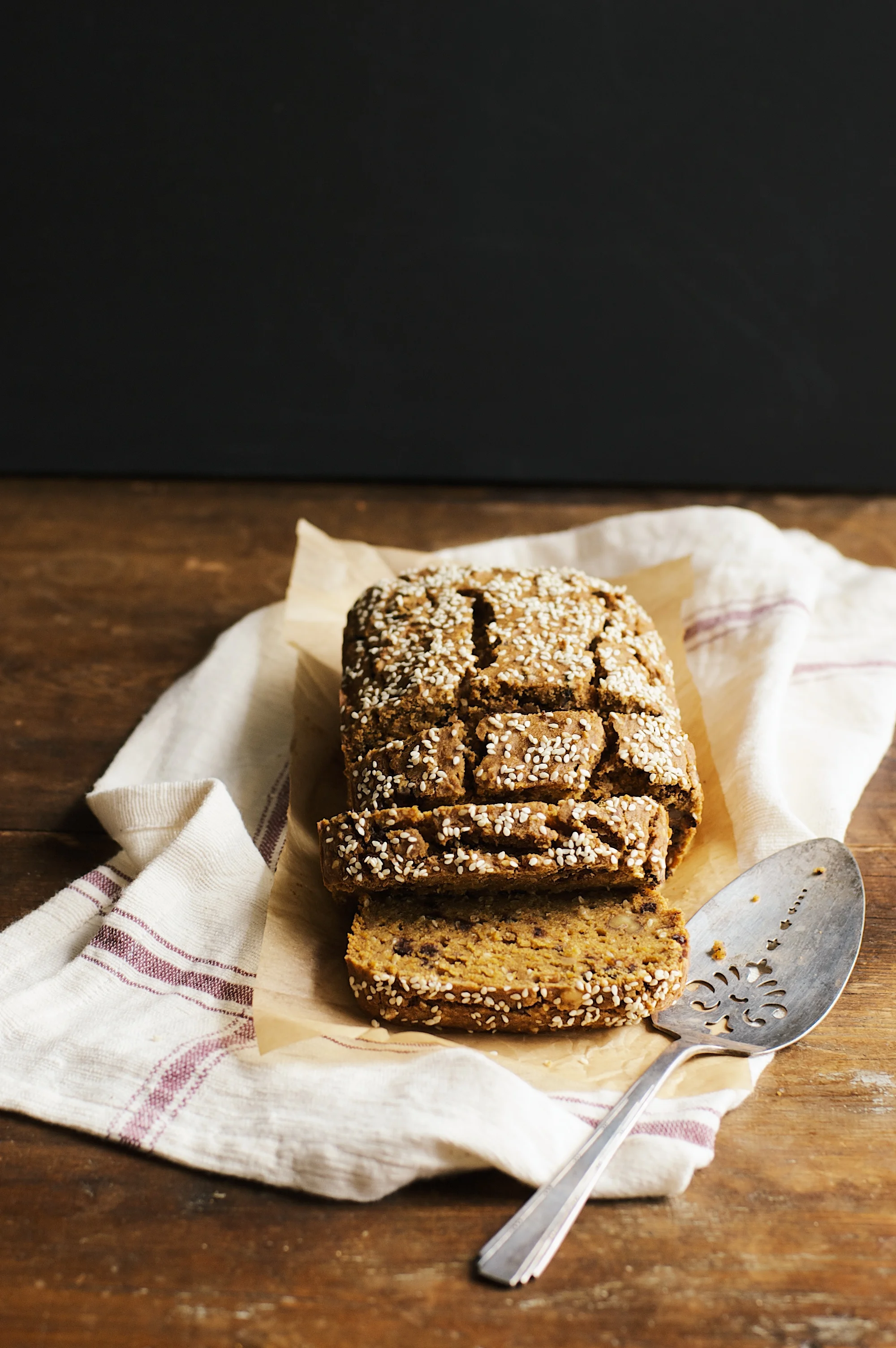 heirloom pumpkin bread w/ sesame seeds + orange zest (and some chocolate chips too!) - gluten free + dairy free