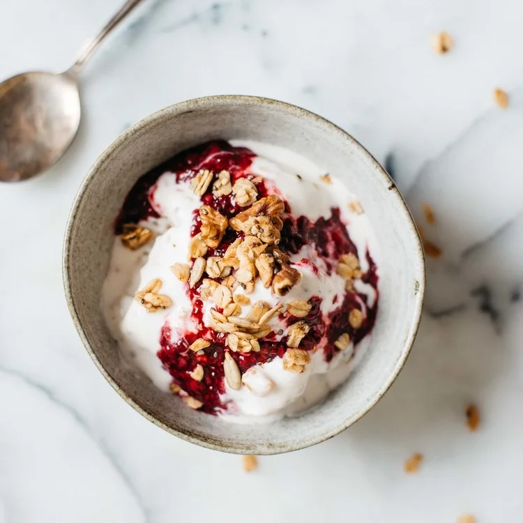 we’re talking sauce this sunday, but one that’s creamy and sweet! weekday mornings have the tendency to be monotonous, and this cashew cream aims to jazz up those sometimes boring breakfasts into something that you look forward to. i can easily fall into the smoothie-every-morning routine, but i find that when i have this cream sitting in my fridge i’m more likely to prepare a breakfast that takes me out of the routine and starts my day in a fun, refreshing way. all we do here is soak the cashews for up to 5 hours (or overnight). then it’s a quick whiz in your blender with maple syrup, a couple teaspoons vanilla extract, fresh lemon juice, a splash of vinegar (i know, sounds weird, but a little bit goes a long way in giving this cream a little punch), a pinch of salt, and some water to get everything nice and smooth.