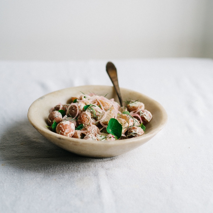 i think we can unequivocally say: potatoes are life.  especially this time of year.  around mid-june, back on the east coast, would be the beginning of new potato season.  my favorite farm stand, fishkill farms at our tiny brooklyn farmers market had the best little taters, second only to the csa potatoes my mom would get from stone barns farm.  every week we looked forward to roasting them plain with a bit of salt & pep, grilling them kebab-style with red onions, or making a potato salad.  but in all that time, i never tried a smashed version.  a couple weeks ago,  frank and i had a very casual memorial day celebration at our place, and i made smashed potatoes for the first time!  and now i'm kind of obsessed with them.  so much so, i have a few notes/technique tips for you to making these potatoes the very best.